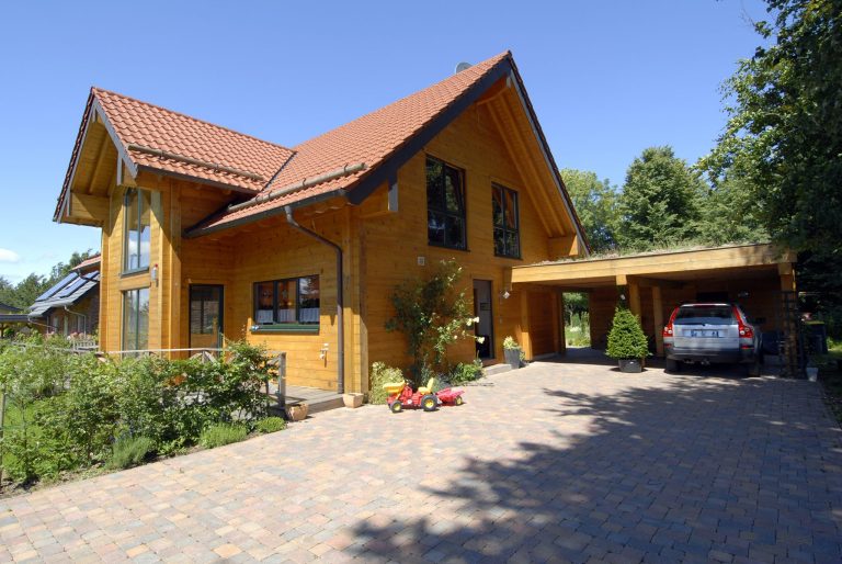 „Willkommen an einem Ort der Gelassenheit, Harmonie und Lebensfreude!" Ein Holzhaus als Pfeiler für persönliches Lebensglück – in diesem Sinne hat dieses Baupaar sein Holzhaus ganz genau nach den eigenen Vorstellungen, Wünschen und Ideen geplant und so für das eigene Wohnglück gesorgt.