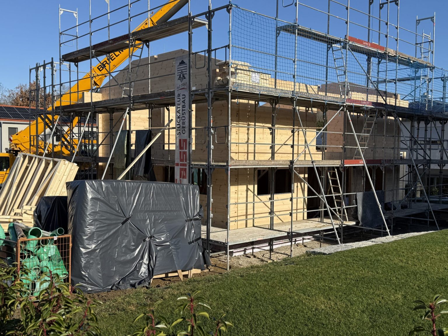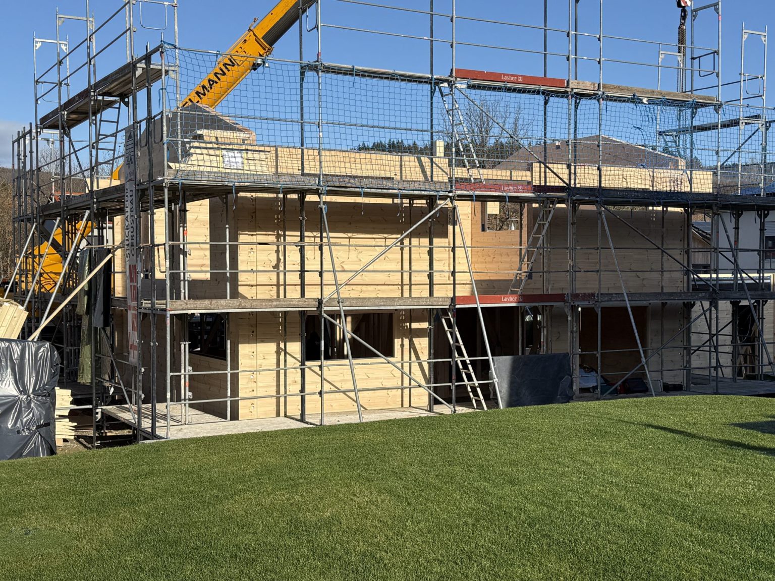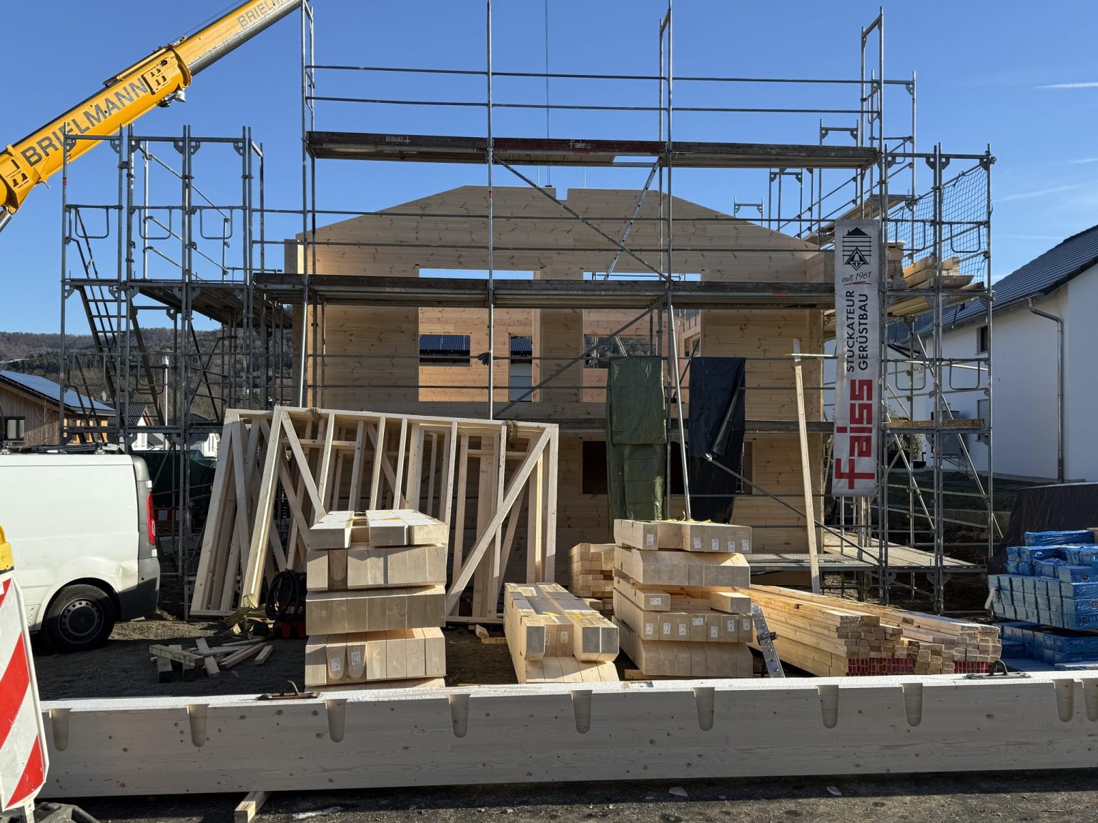 Blockhaus in Neubaugebiet