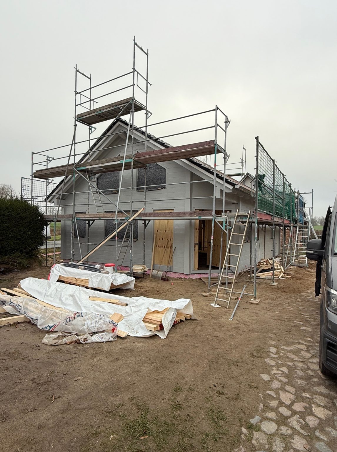 Der Bauherr baut sein Blockhaus als Richtmeister-Montage zusammen mit seinem Bekanntenkreis auf. Große Unterstützung bekam er auch von seinen Eltern. Da er selber in einem Blockhaus aufgewachsen ist, kam für ihn nichts anderes infrage! Die vor Ort gegebenen Gewerke waren alle top informiert, sodass es für uns als Firma eine Freude war, dieses Bauvorhaben umzusetzen!